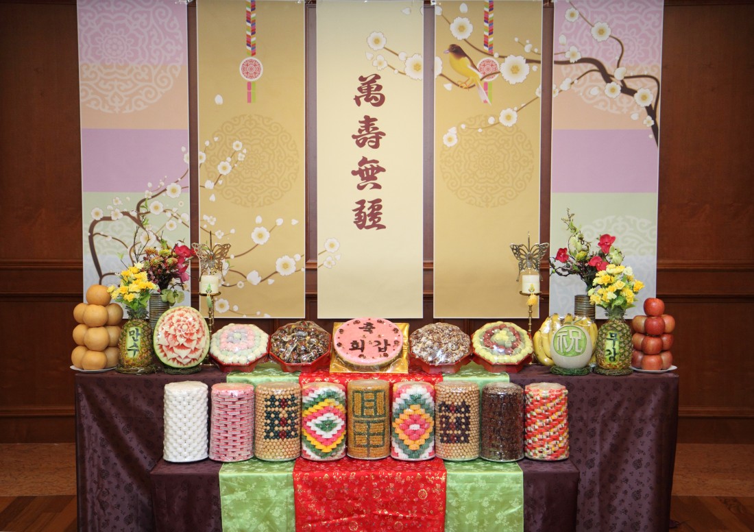 2. 상차림 중앙에 대형 떡케익 셋팅
